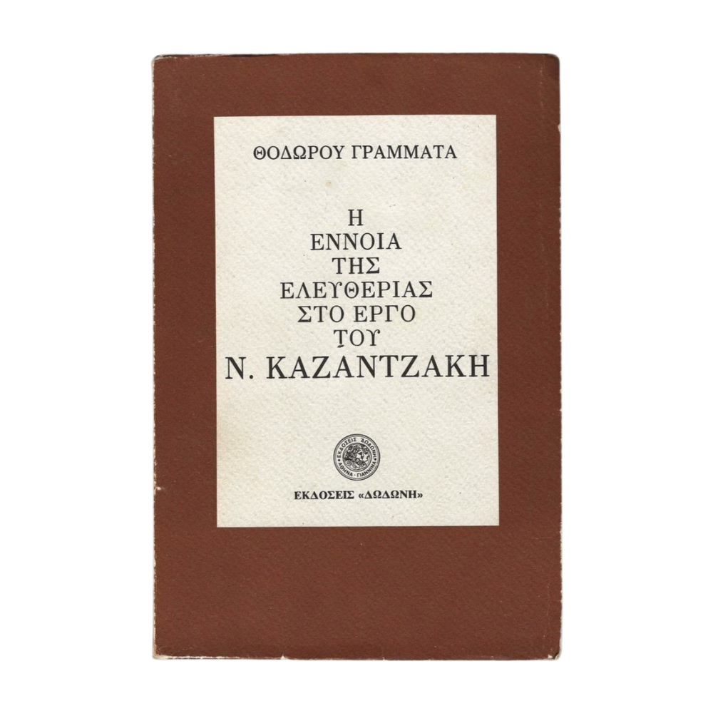 Θεόδωρος Γραμματάς – Η έννοια της ελευθερίας στο έργο του Ν. Καζαντζάκη Εκδόσεις Δωδώνη, 1983 203 σελίδες Το εσωτερικό σε εξαιρετική κατάσταση, μικρό σκίσιμο στο κάτω μέρος του οπισθόφυλλου.