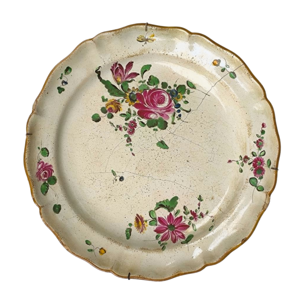 Τεχνική τριπλής όπτησης. Γραπτός ροκοκό διάκοσμος με άνθινες συνθέσεις, με κυρίαρχο θέμα το τριαντάφυλλο (μοτίβο ”alla rosa”)