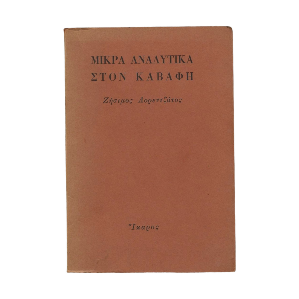 Ζήσιμος Λορεντζάτος – Μικρά Αναλυτικά στον Καβάφη Πρώτη Έκδοση Εκδόσεις Ίκαρος, 1977 Η ράχη έχει αποκολληθεί απο το εξώφυλλο, το εσωτερικό σε εξαιρετική κατάσταση. 44 σελίδες